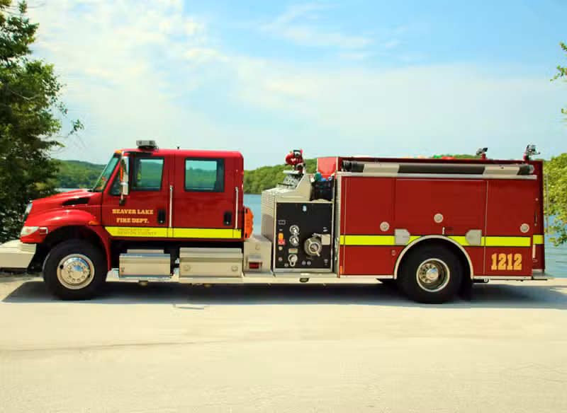 Rescue/Engine 1212 is a 2005 International/Pierce, with a 1250GPM Top Mount Pump, 1,000 gallons of water, and a 20 Gallon Foam cell. Rescue/Engine 1212 is equipped with a combination (combi) extrication tool and ram, a medical response bag, and AED. Rescue/Engine 1212 carries 5 firefighters.